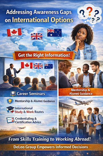 DeLeo Group bridges awareness gaps on international education and employment, especially for Canada, by providing structured guidance, practical exposure, and targeted information. Through seminars, digital sessions, mentorship, and career advisory services, students learn about certification pathways, credential equivalencies, skilled work routes, and study-to-work opportunities. Training programs align skills with global labor market needs and employer expectations, while alumni engagement and international partnerships reinforce awareness. By turning information into actionable pathways, DeLeo Group empowers students to pursue international education and careers with clarity and confidence.