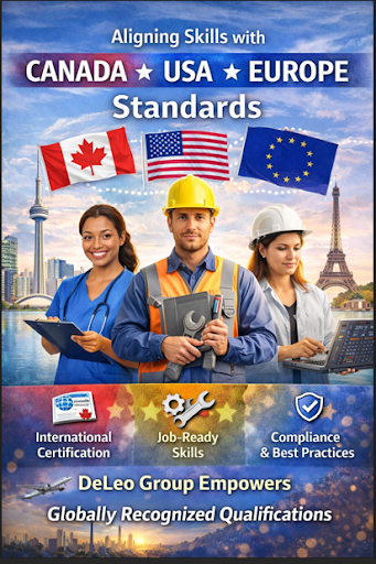 DeLeo Group aligns training programs with Canadian, U.S., and European occupational standards, certification frameworks, and employer requirements. Through partnerships with accredited bodies, it prepares students for credentialing, certification exams, and skills assessments while emphasizing practical, job-ready skills and compliance. By combining standardized training, certification readiness, and career guidance, DeLeo Group enables learners to turn local training into globally recognized qualifications and access skilled employment and further education internationally.
